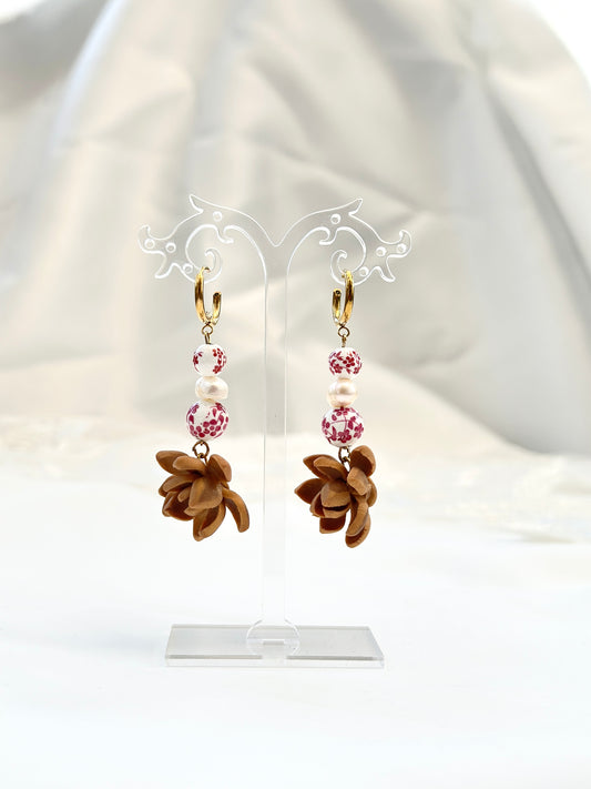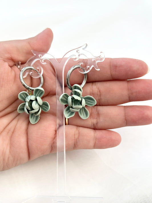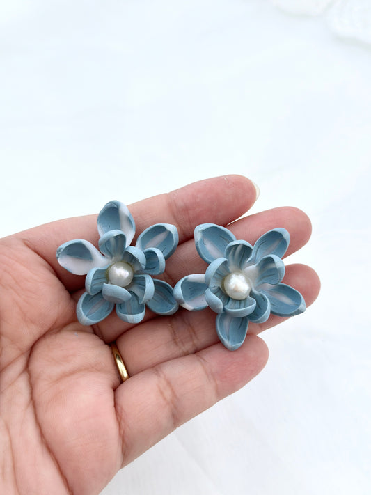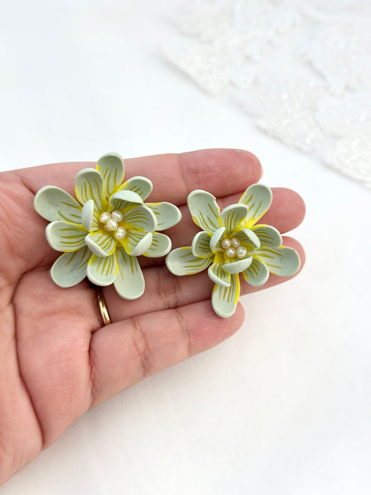 Sage Green and Yellow Sampaguita studs with seed pearls