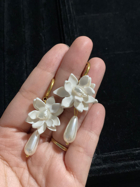 Gold Hoop Sampaguita with Pearl Dangling Earrings