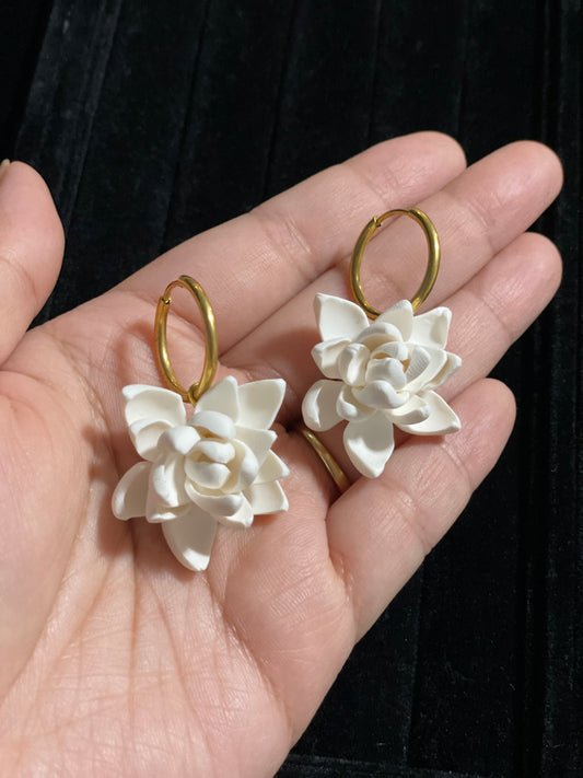 Gold Square Hoop Sampaguita with Dangling Earrings