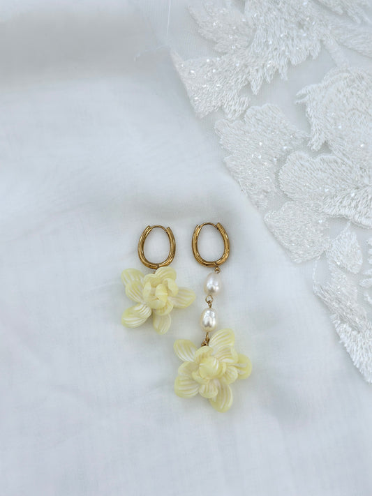 Sage Green and Yellow Sampaguita studs with seed pearls