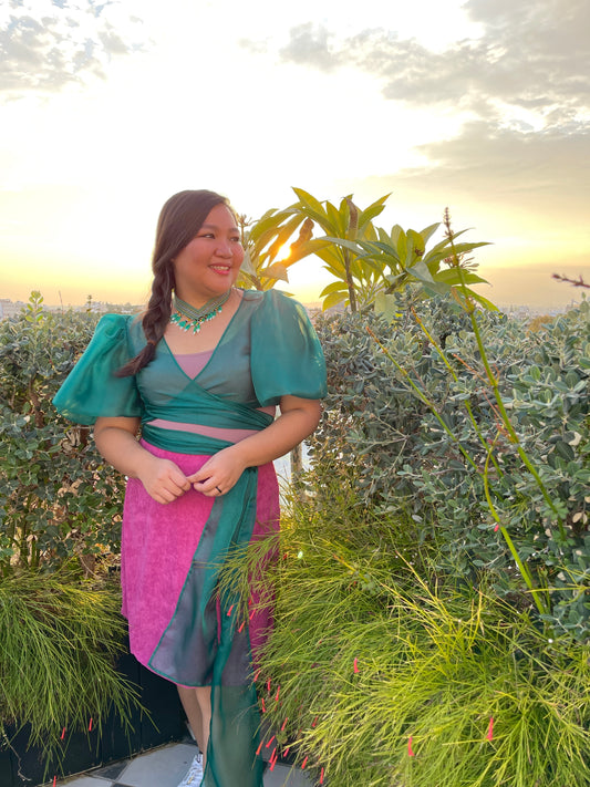 Malambing in Bougainvillea 2 bow front Filipiniana Top