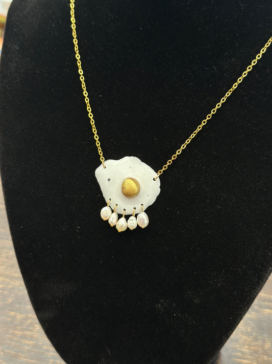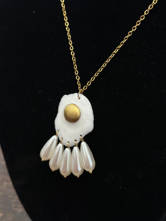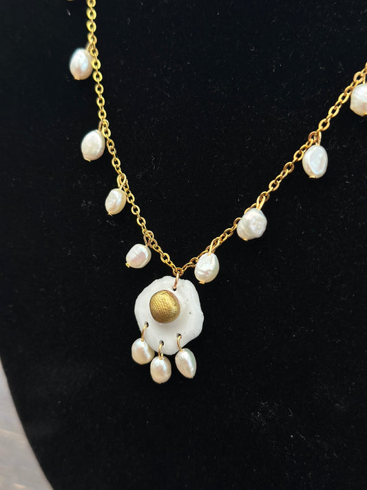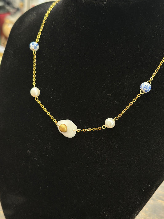 Sampaguita, Pearls, and Porcelain Dangling Earrings