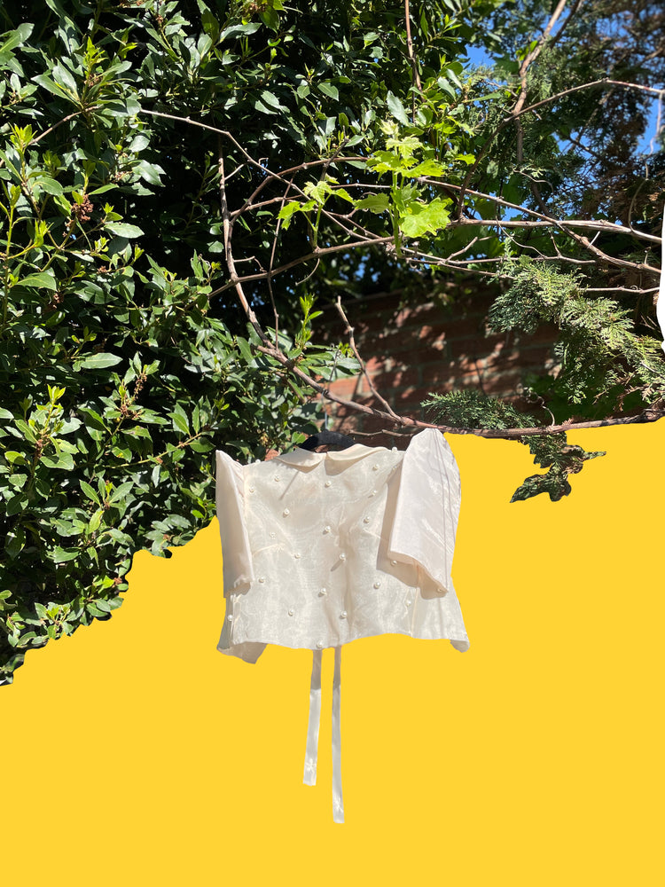 Binibini in Rosas Tie Back Camisa Filipiniana Top
