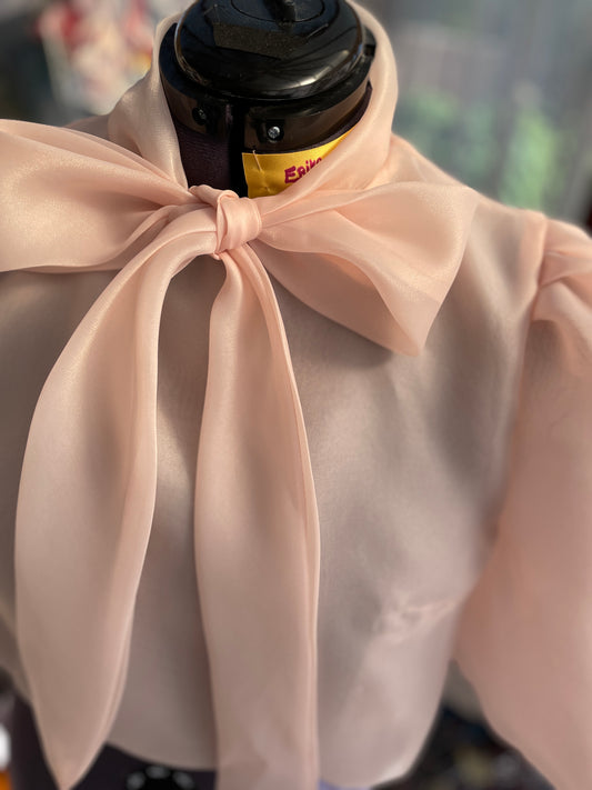 Mahiyain in Melon Pussy Bow buttoned back Filipiniana