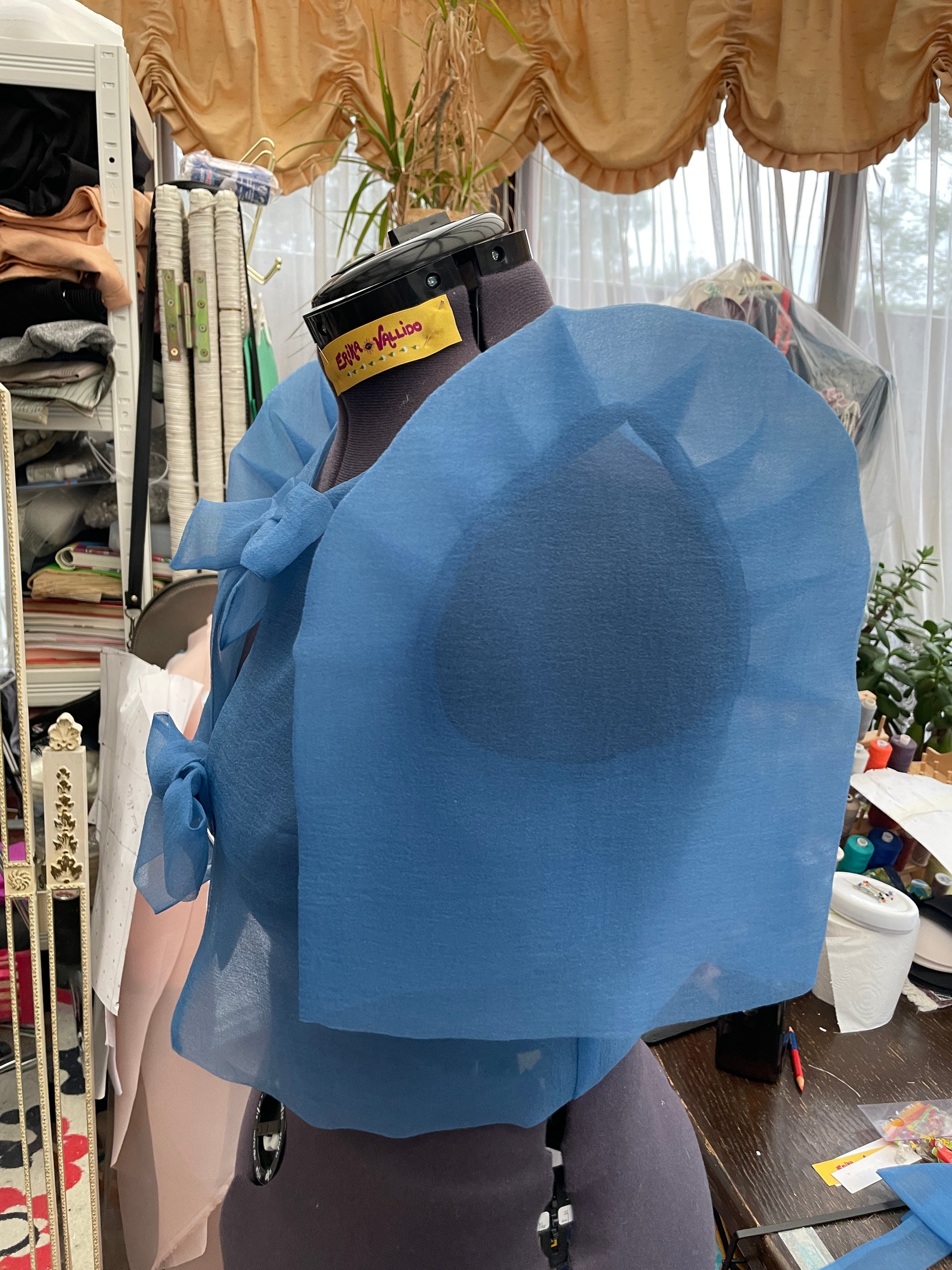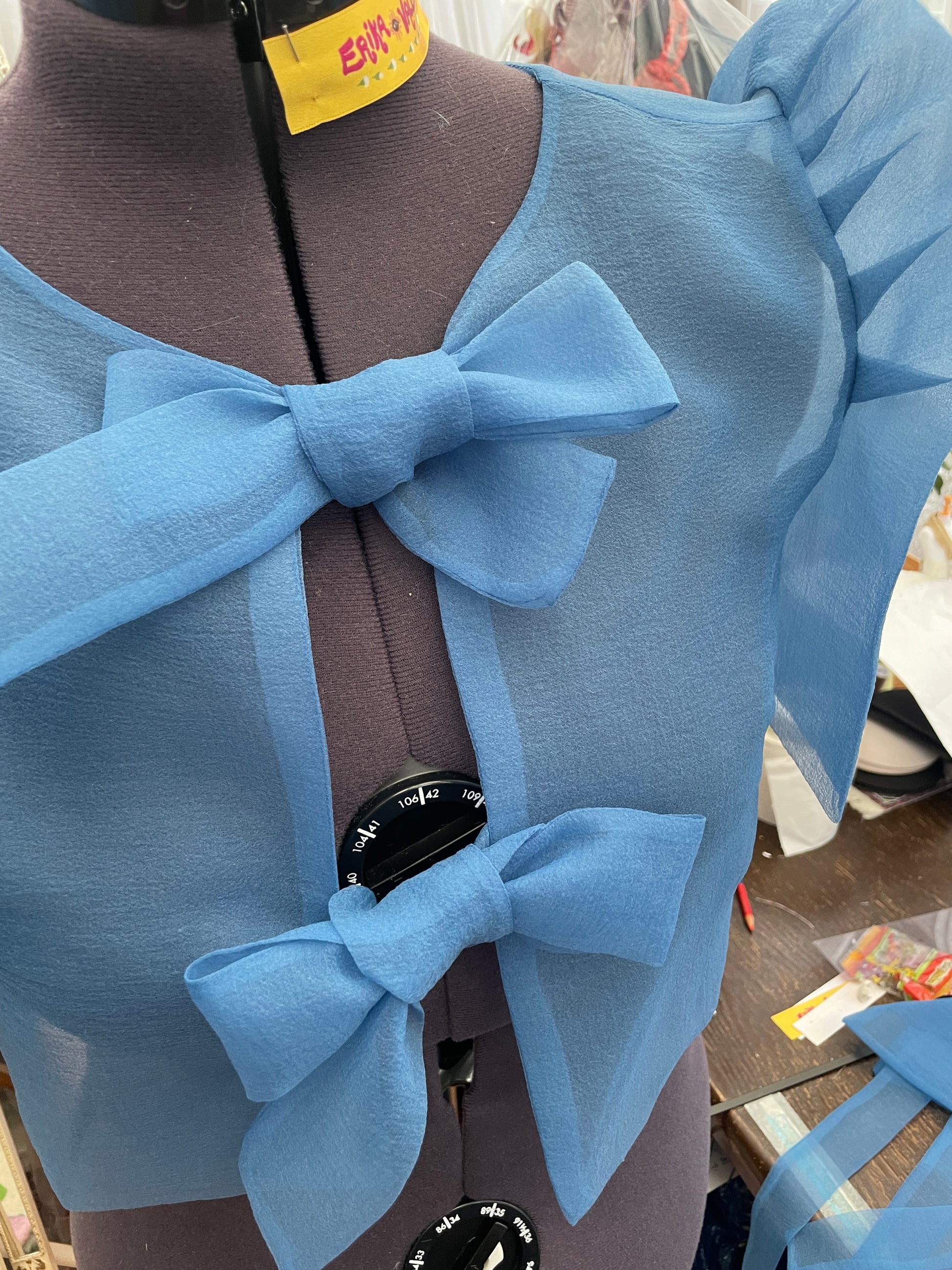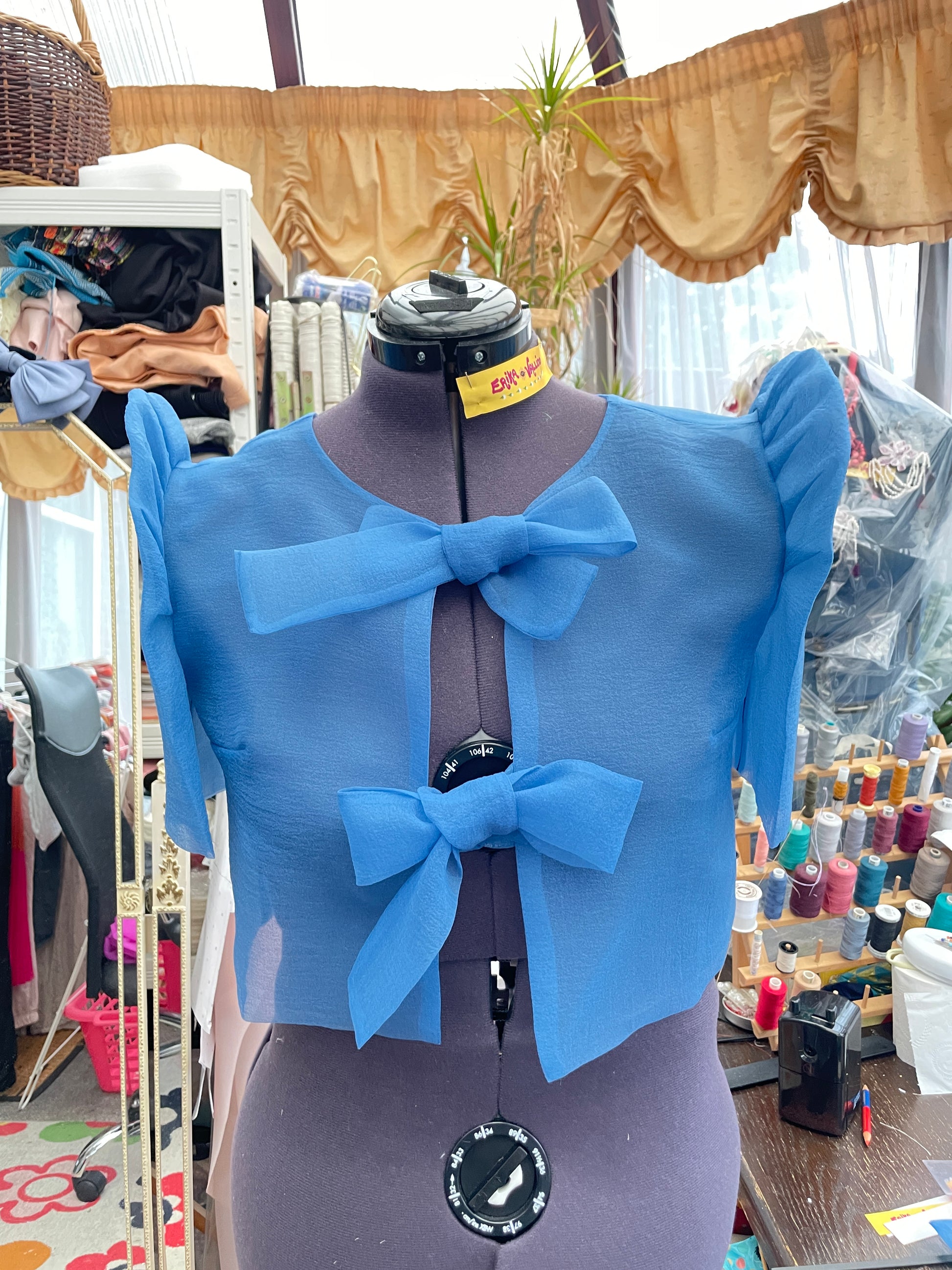 This top can be handwashed, and minimal light ironing or steaming to maintain the sleeves and smooth creases.