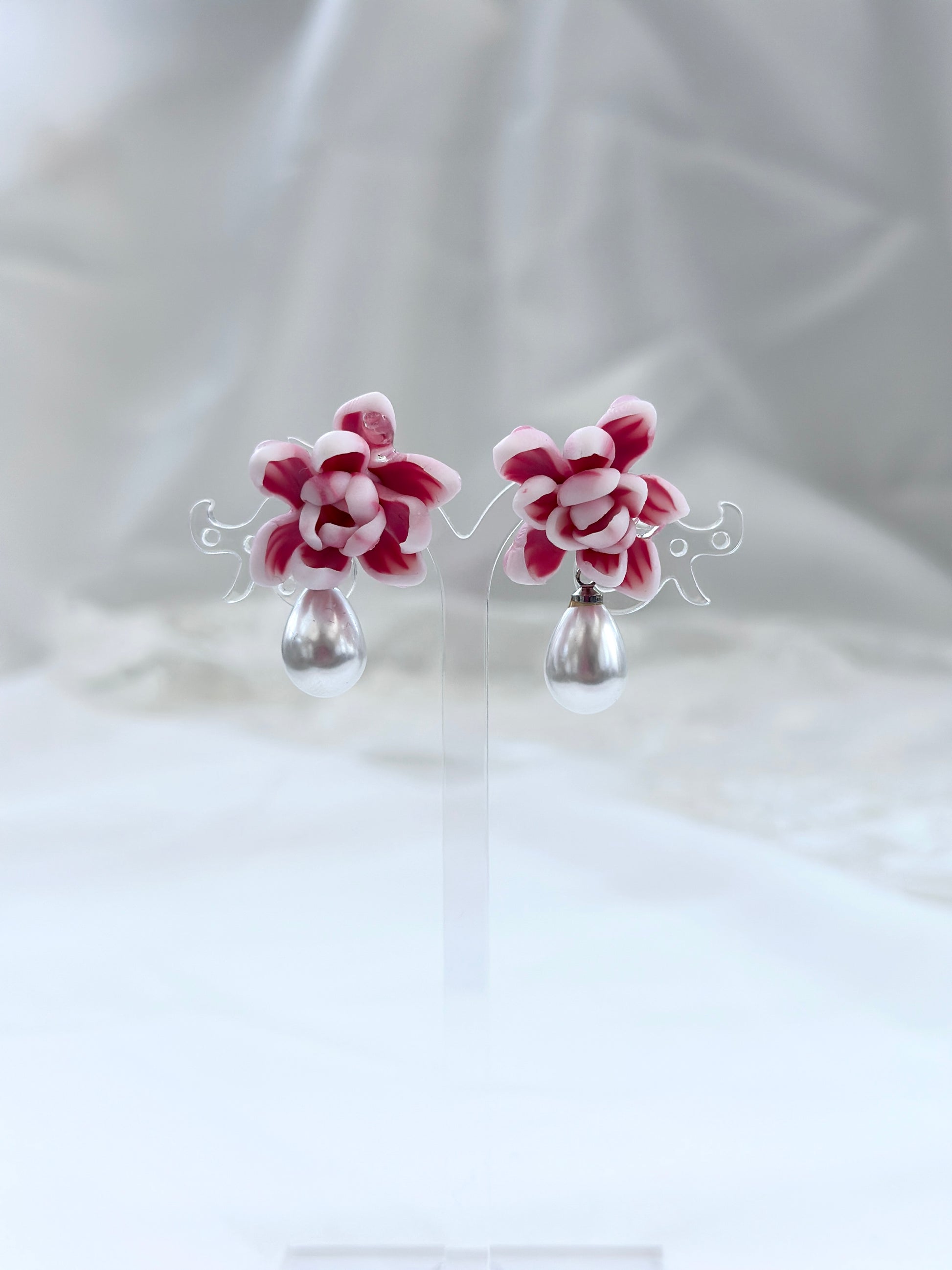 Handmoulded Polymer Clay Sampaguitas, Faux Pearl Drop, Stainless steel studs