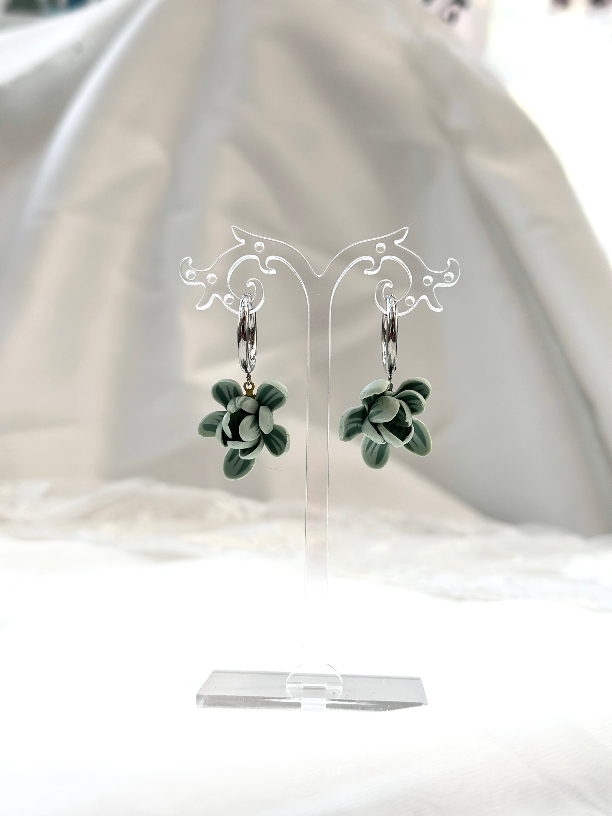 Handmoulded Polymer Clay Sampaguita, Stainless steel hoops
