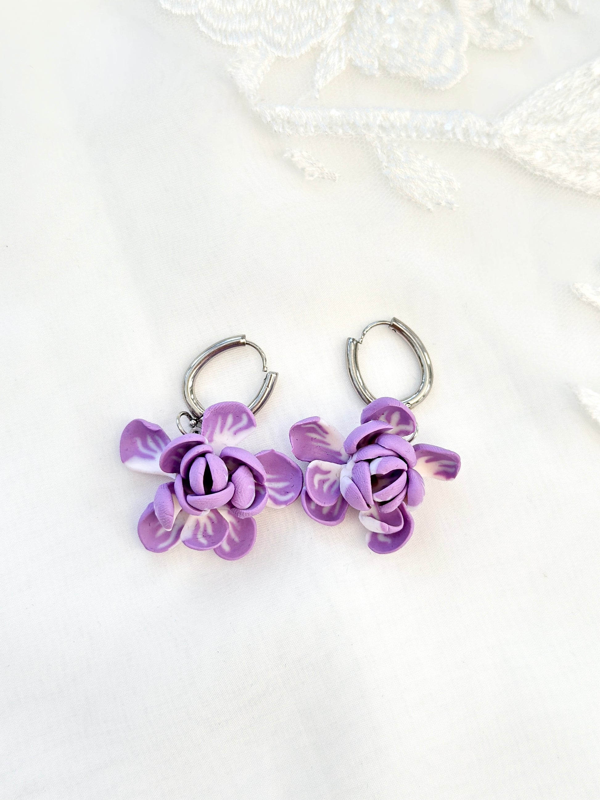 Handmoulded Polymer Clay Sampaguita, Stainless steel hoops