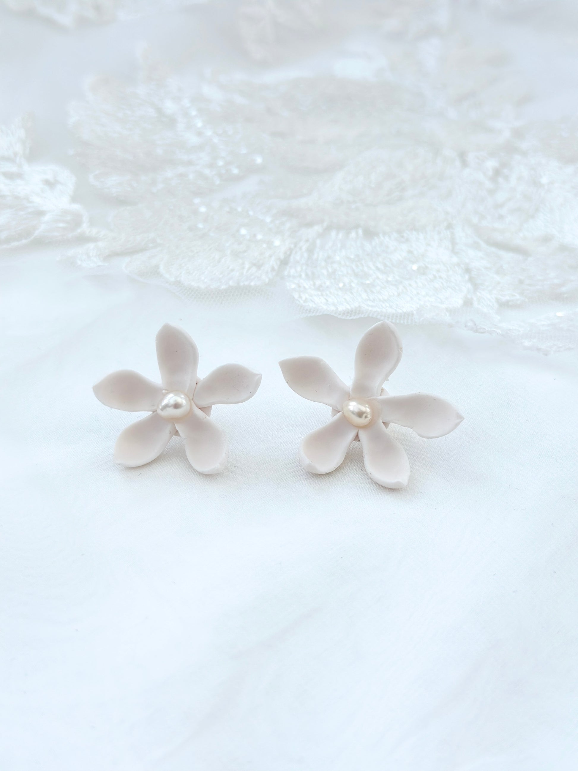 Handmoulded Polymer Clay Sampaguita, Stainless steel Studs